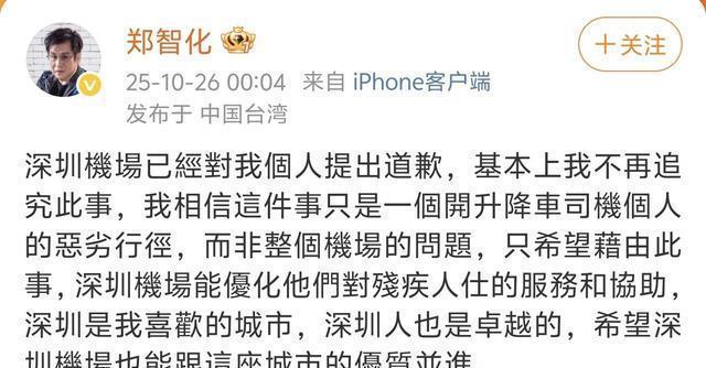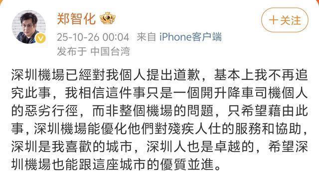 郑智化也表示“接受道歉,此事翻篇”。